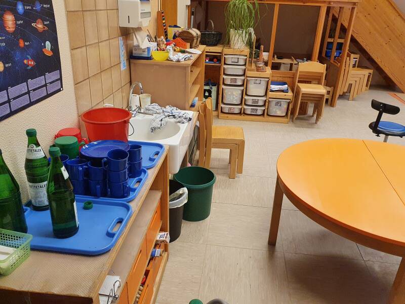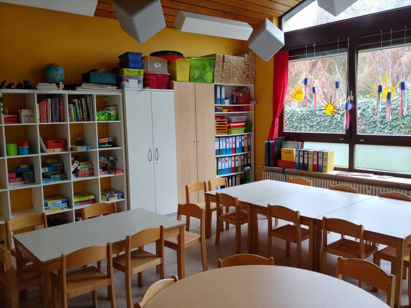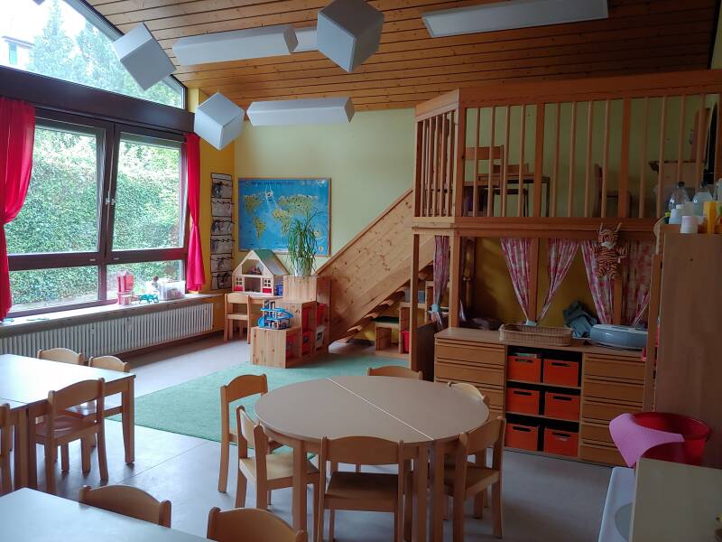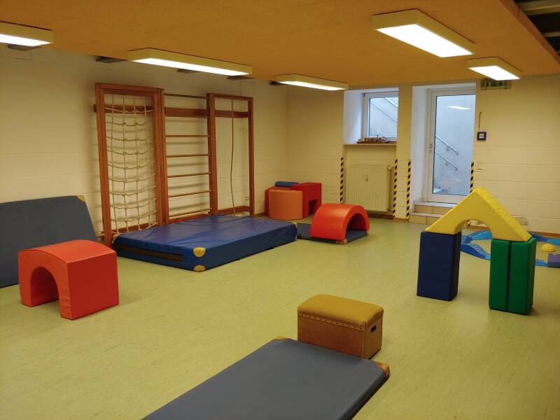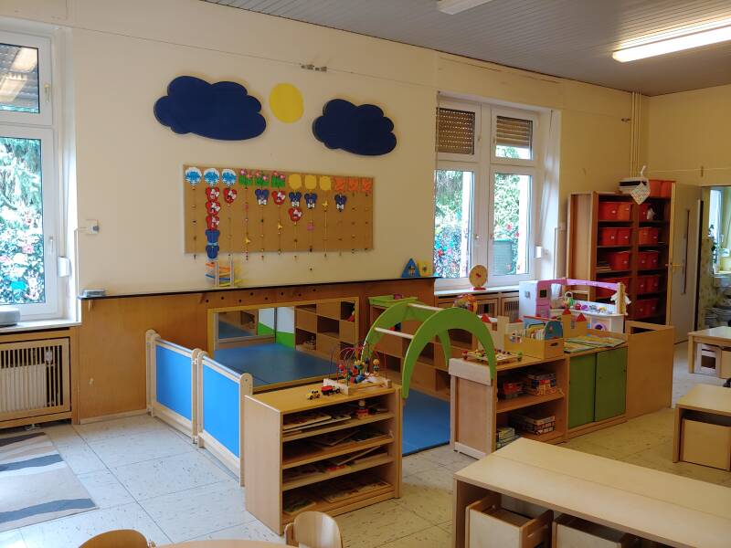 In unserer Kita gibt es neben den vier Gruppenräumen mehrere Kleingruppenräume, ein Gartenhaus für Kleingruppenarbeit, einen Turnraum und einen Waschraum für die Größeren.